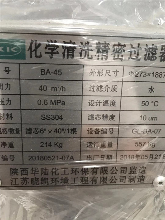 反渗透保安过滤器铭牌