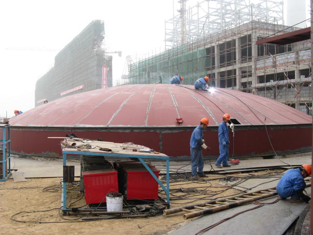 除盐水箱倒装法拼接顶盖